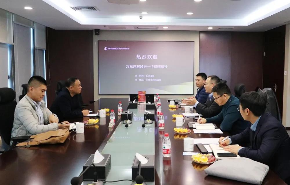 簽約前,千秋建筑總經理姜文祥一行到建華建材集團總部進行交流。建華建材總裁何海平、建華建材山西區域總經理高杰、建華建材投資發展辦公室副總監楊元等領導參加了交流。雙方分享了各自企業的發展歷程和管理經驗,就股權收購達成一致意見。雙方均表示,希望以此次合作為開端,進一步探索多元化合作新模式,爭取在其他產業和業務層面達成更深入的合作,實現優勢互補、互利共贏。