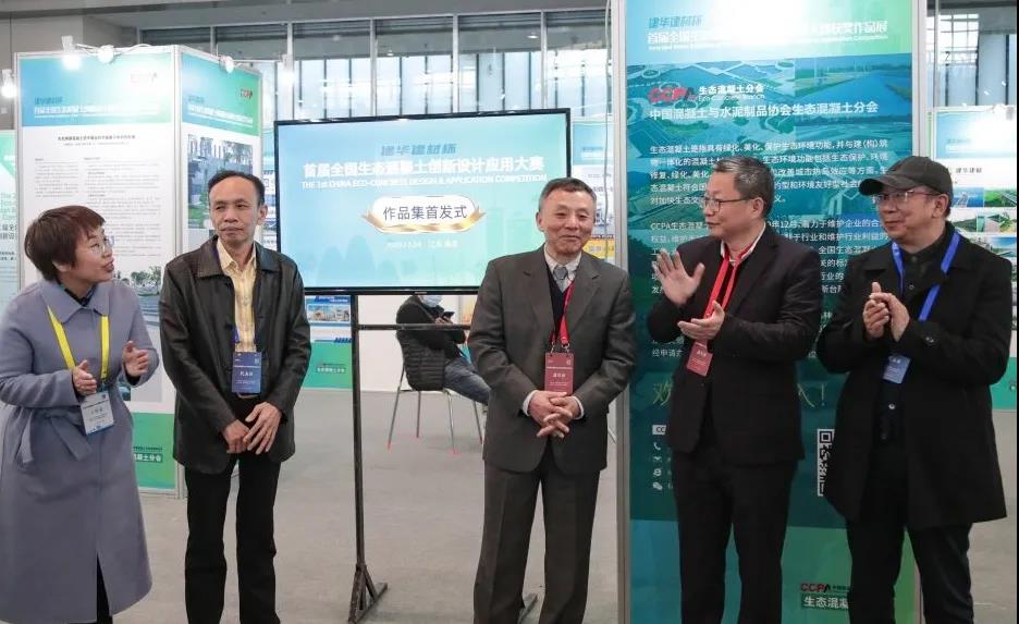 12月4日,中國混凝土與水泥制品協(xié)會執(zhí)行會長徐永模先生、CCPA生態(tài)混凝土分會理事長、建華建材(中國)有限公司執(zhí)行總裁張雁先生出席《首屆全國生態(tài)混凝土創(chuàng)新設(shè)計應(yīng)用大賽獲獎作品集》首發(fā)式。首發(fā)式現(xiàn)場獲獎作品通過展板、圖片、視頻、樣品等方式展示大賽獲獎項目及創(chuàng)意成果,吸引了無數(shù)參觀者的目光。