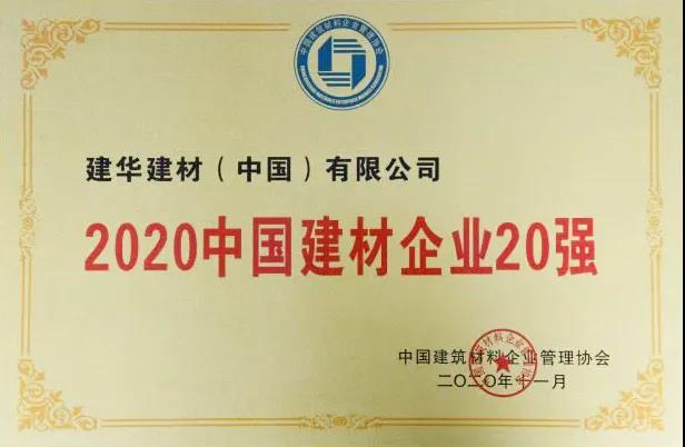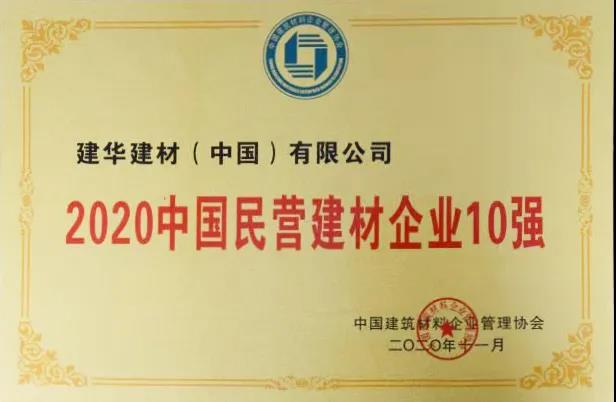 建華建材(中國)有限公司在“2020中國民營建材企業100強”中排名第三名;