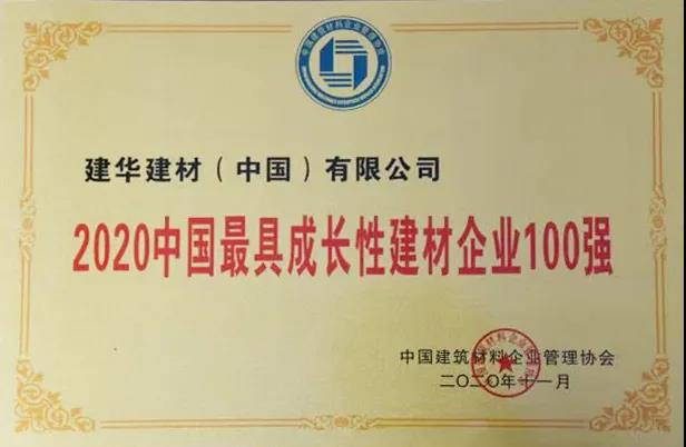 建華建材(中國)有限公司在“2020中國最具成長性建材企業100強”中排名第六名!