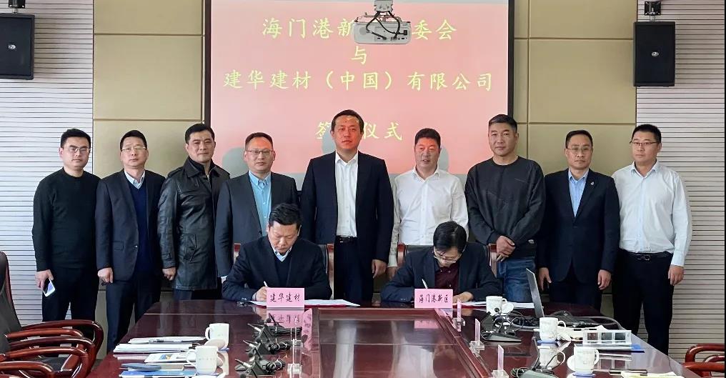 在海門區和建華建材集團相關領導的共同見證下,海門港新區主任朱健華和建華建材集團總裁助理鄭賽榮作為雙方代表,共同簽署了項目合作協議。