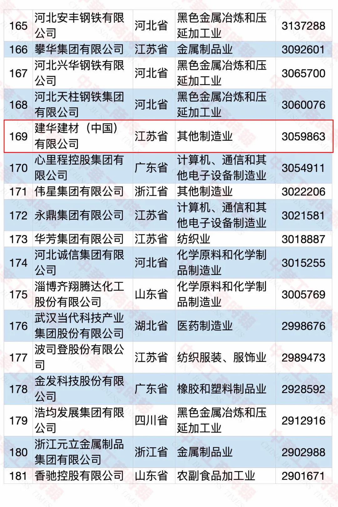 建華建材集團(以下簡稱建華建材)在2020中國民營企業500強中排名302位;在2020中國制造業民營企業500強中排名169位。