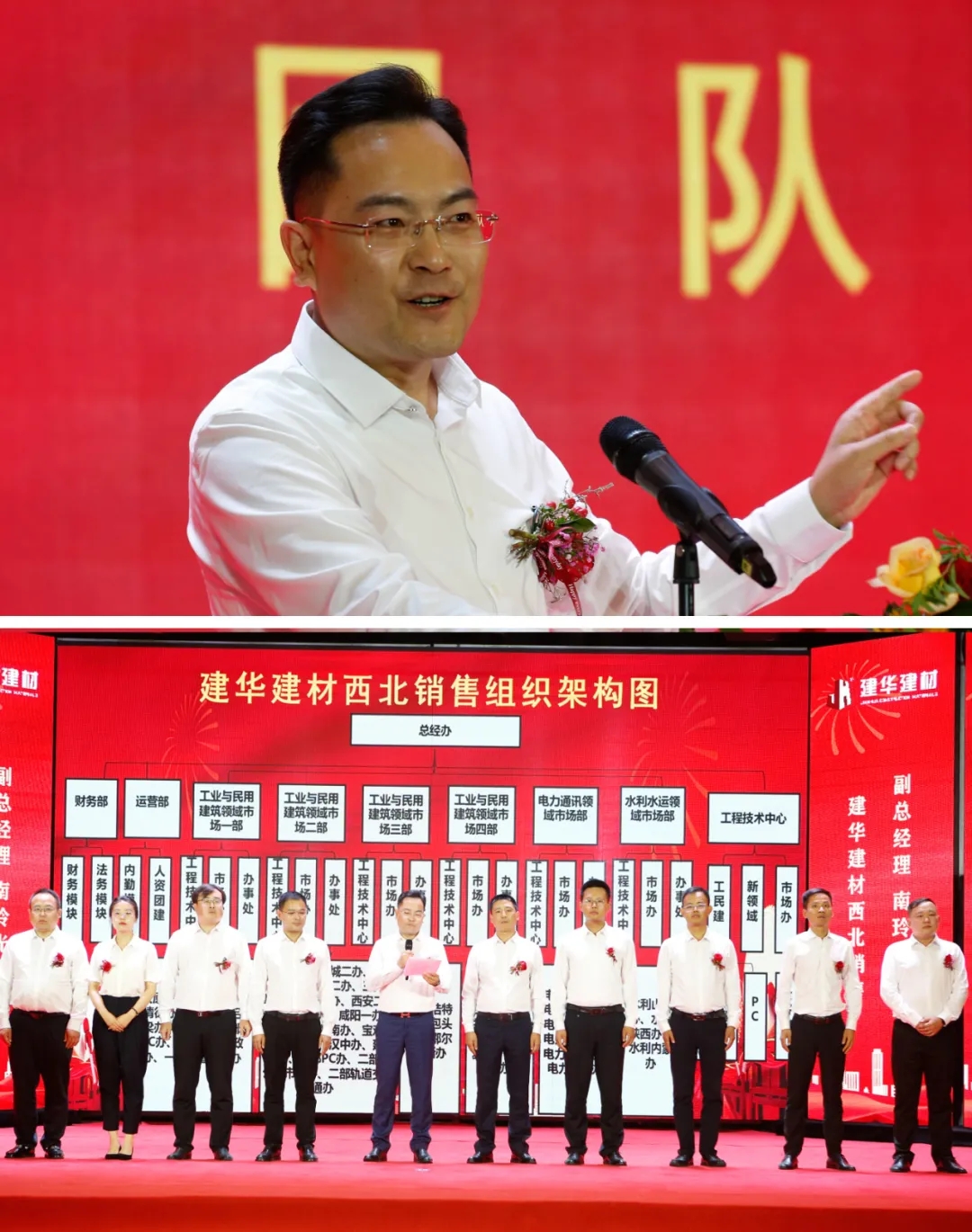 西北銷售副總經理南玲光向大家介紹了西北銷售組織架構和管理團隊,南總指出建華建材西北銷售公司的成立,是建華建材集團在西北區域戰略部署的重要舉措,也是公司發展西北市場的決心與力度,可以充分發揮區域優勢、產銷優勢、資源優勢、人才優勢、運輸優勢等,更好的參與市場競爭及市場推廣與開拓,為廣大客戶提供更優質的綜合性服務與全方位合作。
