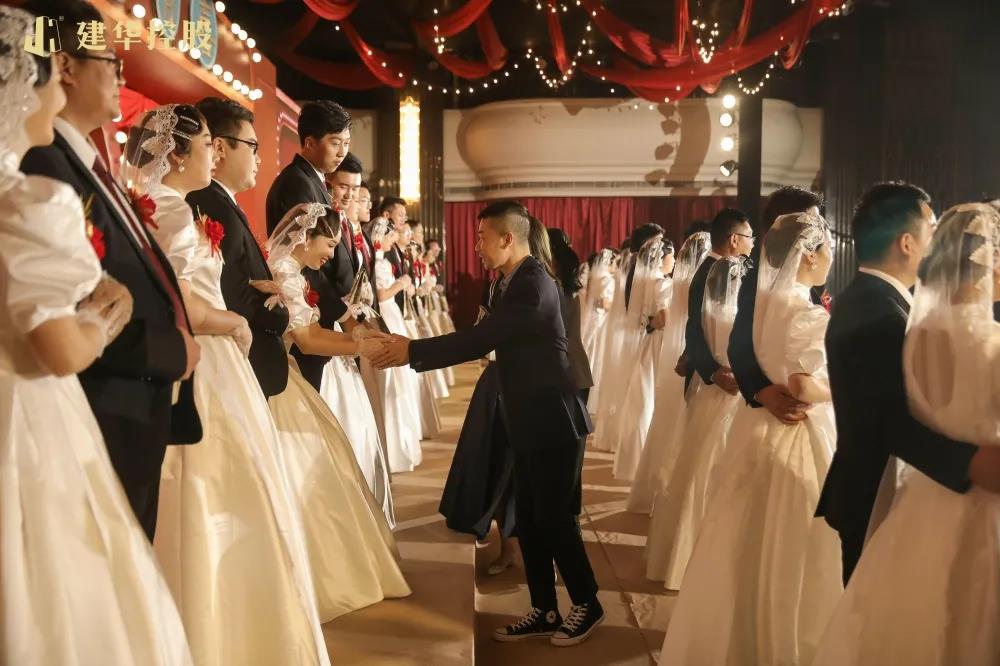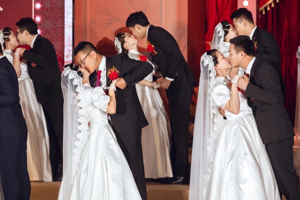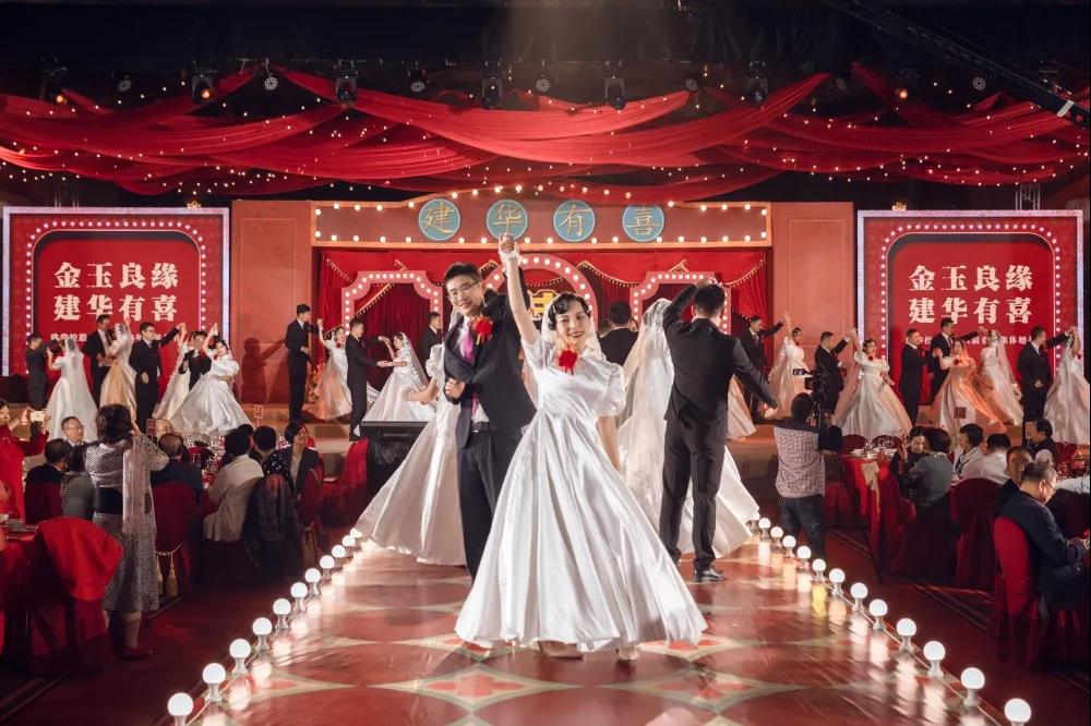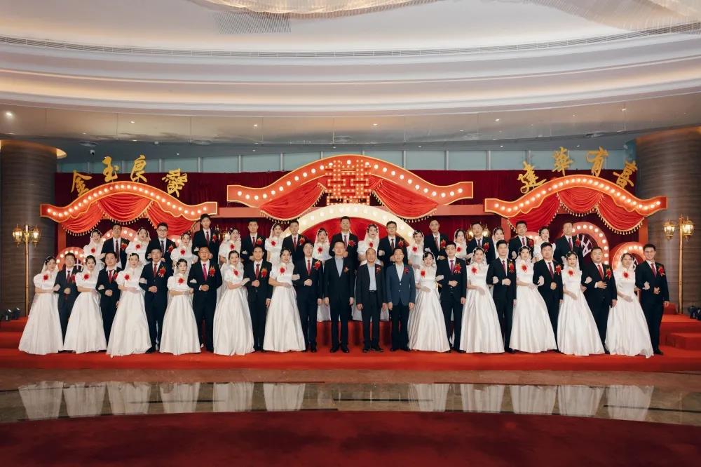 22對新人在鼓舞飛揚的開場舞中步入婚禮殿堂,幸福喜悅在每個人臉上洋溢。
