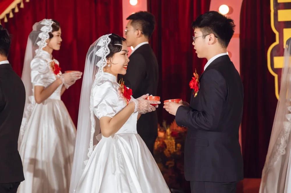 新人在領導嘉賓的見證下互送禮物,共同許下相伴終生的愛情誓言。