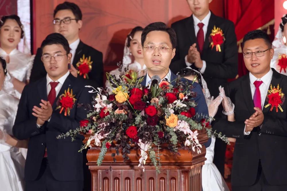 許景新先生親自為新人們證婚,對全體新人喜結良緣表示祝賀,希望全體新人在人生旅程中互敬互愛、和睦相處,用心經營幸福家庭,用愛締造美好未來!