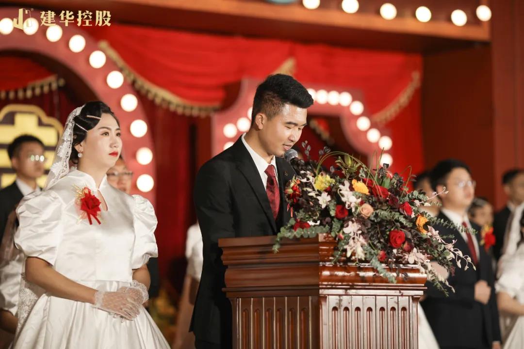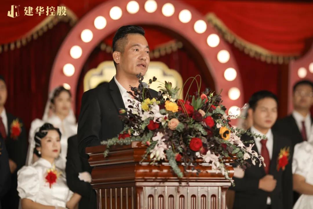 建華建材集團董事長王剛先生為新人送上真摯祝福,希望他們在今后的工作、生活中,踐行“走正道,負責任,心中有別人”的企業文化,在建華大家庭中成就自己的小家庭,共同創造生活甜蜜、事業有成的美好未來!