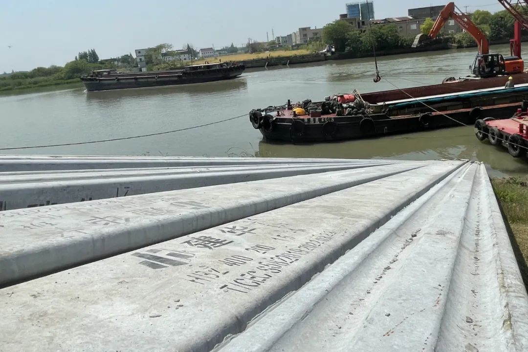項目先導段全長4.5公里,沿線地質復雜,施工難度大,加之汛期在即,施工工期非常緊迫。正式開工前,建華建材技術人員與項目組多次召開專題會議,協助編制了詳細的生產、運輸、施工保障方案,從技術支持、工藝流程、安全管理等多方面進行交底,確保項目順利施工。16日開工現場,多臺打樁機分段同步施工,在技術人員的現場指導下高效施打,順利完成沉樁目標。