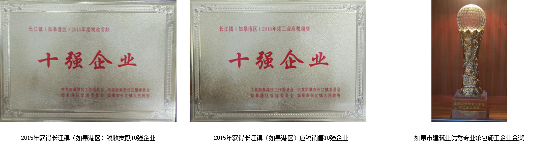 2014年獲得如皋市建筑業優秀專業承包施工企業金獎